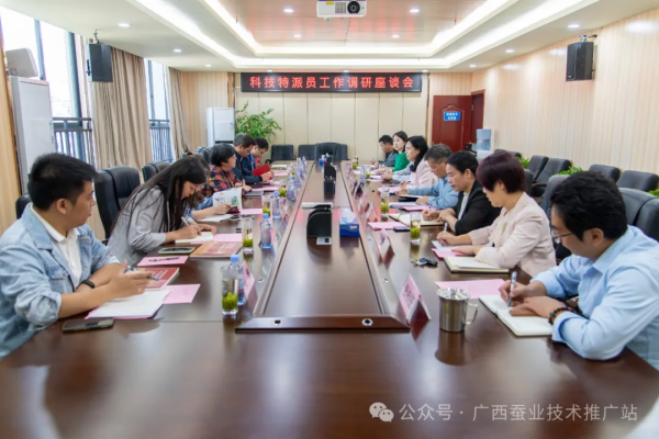座談會(huì)上,廣西蠶業(yè)技術(shù)推廣站黃紅燕副站長(zhǎng)向調(diào)研組介紹了單位特派員工作的開(kāi)展情況;科技特派員代表匯報(bào)了服務(wù)工作中存在的問(wèn)題、困難,并提出了意見(jiàn)和建議。胡熳華對(duì)廣西蠶業(yè)技術(shù)推廣站特派員工作開(kāi)展情況和對(duì)特派員提供的科研保障和服務(wù)保障表示了肯定。她指出今年是科技特派員制度推行的第25年,25年來(lái),廣大科技特派員走進(jìn)基層、深耕田間,在助力科技創(chuàng)新和產(chǎn)業(yè)創(chuàng)新深度融合方面取得了突出成效。新時(shí)代新征程上,要進(jìn)一步推行科技特派員制度,更加注重團(tuán)隊(duì)服務(wù)的力量,“把科研做在產(chǎn)業(yè)中、把論文寫在大地上”。
