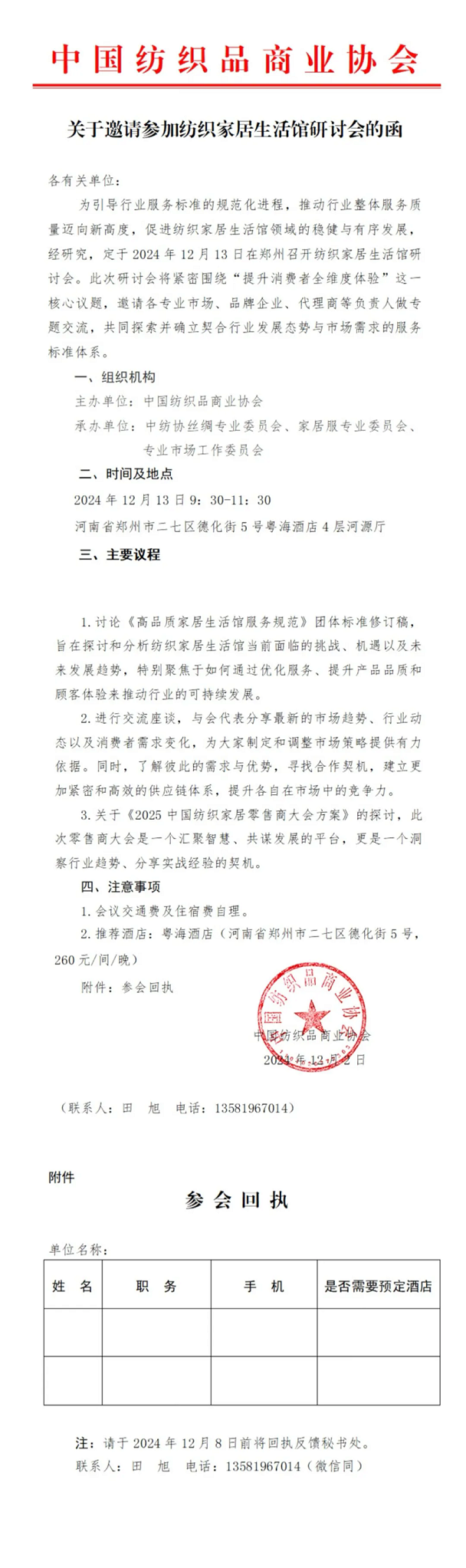 中紡協(xié)即將召開紡織家居生活館研討會(huì)