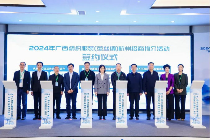 此次活動(dòng)還包含產(chǎn)業(yè)推介、合作簽約、服裝走秀等環(huán)節(jié),現(xiàn)場(chǎng)促成簽約和意向合作簽約項(xiàng)目共7個(gè),對(duì)繭絲綢產(chǎn)業(yè)協(xié)作取得實(shí)質(zhì)成效,將推動(dòng)廣西繭絲綢產(chǎn)業(yè)持續(xù)向縱向延伸和橫向拓展,加快構(gòu)建繭絲綢產(chǎn)業(yè)鏈供應(yīng)鏈耦合發(fā)展新格局。