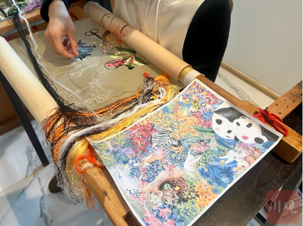 蠶桑現(xiàn)代農(nóng)業(yè)園區(qū)楊家繡房內(nèi)繡娘正在繡制蜀繡作品。