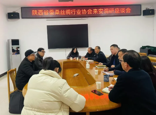 12月5日,陜西省蠶桑絲綢行業(yè)協(xié)會(huì)會(huì)長(zhǎng)方明、副會(huì)長(zhǎng)兼秘書長(zhǎng)劉洋一行來(lái)安康調(diào)研繭絲綢產(chǎn)業(yè)發(fā)展情況,并進(jìn)行了座談。