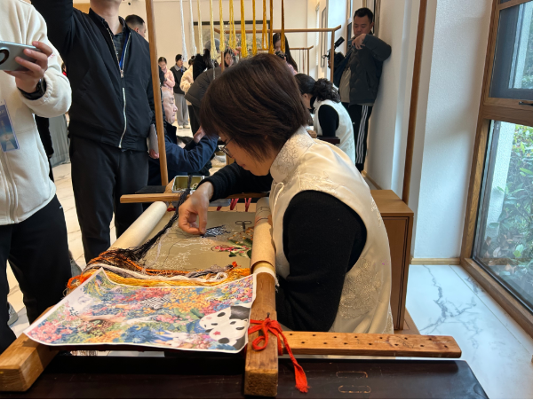 12月4日,“萬(wàn)千蝶變鄉(xiāng)村行”2024中省媒體采風(fēng)團(tuán)從成都出發(fā),一路北上,來(lái)到四川省綿陽(yáng)市涪城區(qū)。隨著最后一季的晚秋蠶鮮繭的售出,涪城區(qū)蠶?,F(xiàn)代農(nóng)業(yè)園終于閑了下來(lái)。不遠(yuǎn)處的繡房?jī)?nèi),繡娘們正用指尖挑動(dòng)著由園區(qū)內(nèi)蠶繭制成的絲線,在織物上勾勒著客戶們預(yù)定的圖案。