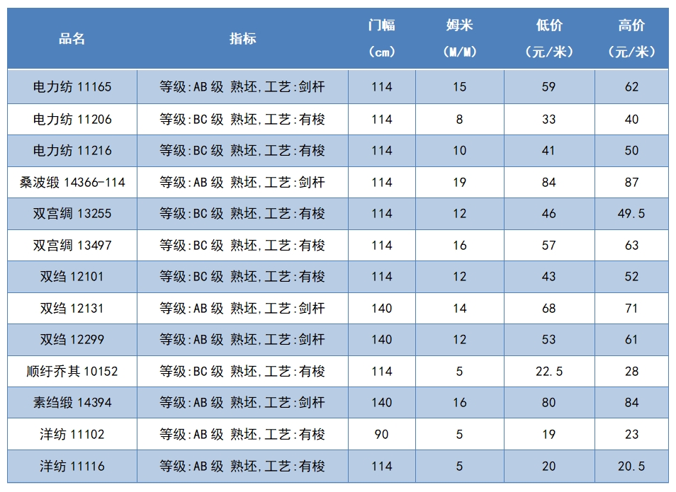 20/22D商檢4A級生絲:今日(周五)生絲盤面各遠近合約小幅收跌。目前時間段是行業(yè)會員積極抓住時機對明年新季進行購銷安排布局的好時機。