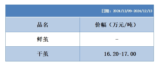 本周協作單位所報蠶繭價格區(qū)間統(tǒng)計