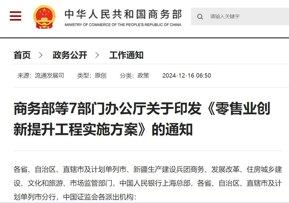 《方案》提出目標,通過每年確定一批零售業(yè)創(chuàng)新提升試點城市,完成一批存量零售商業(yè)設施改造,推廣一批經(jīng)驗成熟的典型案例,到2029年,初步形成供給豐富、布局均衡、渠道多元、服務優(yōu)質、智慧便捷、綠色低碳的現(xiàn)代零售體系。