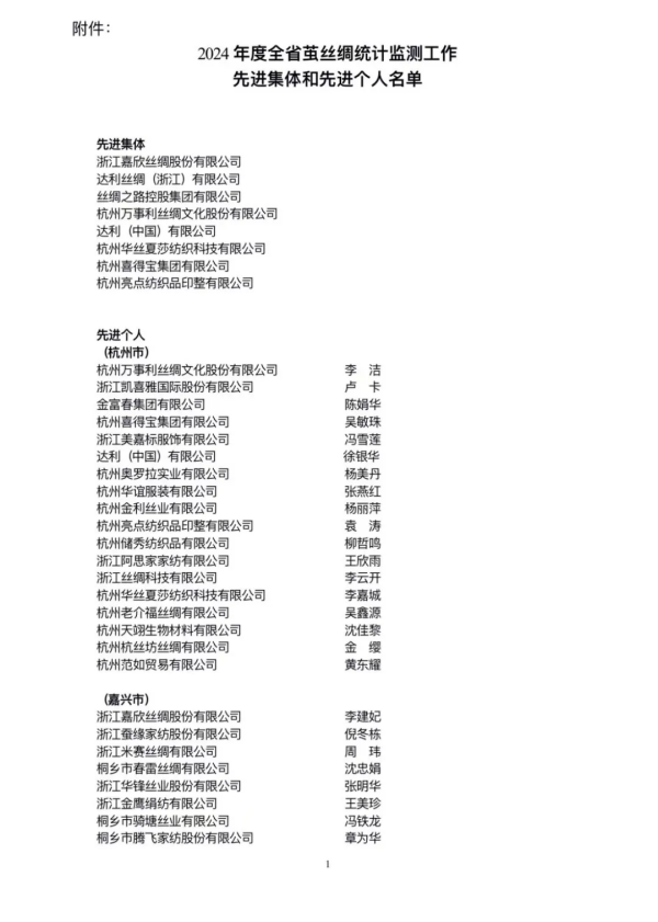 會(huì)議對(duì)2024年度全省繭絲綢統(tǒng)計(jì)監(jiān)測(cè)工作中表現(xiàn)突出的先進(jìn)集體和先進(jìn)個(gè)人進(jìn)行了表彰。(獲獎(jiǎng)名單如下)