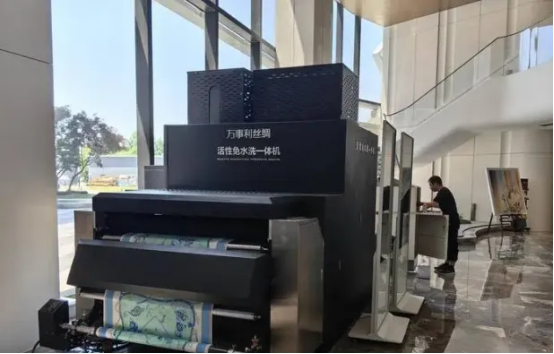 站在新研制的世界領(lǐng)先的萬事利活性免水洗印染一體機前,一條絲巾經(jīng)過AI設(shè)計馬上就能打印出來。特別是AI設(shè)計,3秒鐘就能出20多款花型,而傳統(tǒng)的設(shè)計師,也許3天才能做出一個花型,這背后就是萬事利首創(chuàng)的AIGC設(shè)計大模型在支撐,它能夠為全球80億人每人定制10萬條絲巾且不重樣。