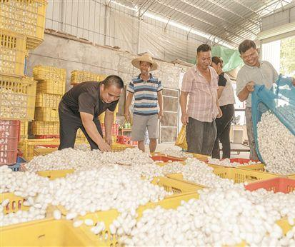 蠶農(nóng)銷售蠶繭。今年宜州區(qū)蠶農(nóng)普遍豐收
