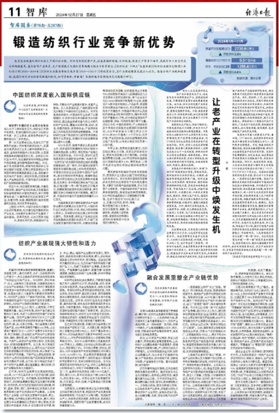 也要看到,當(dāng)前國(guó)際格局正經(jīng)歷深刻調(diào)整,全球經(jīng)濟(jì)增長(zhǎng)動(dòng)能不足,我國(guó)紡織產(chǎn)業(yè)發(fā)展也面臨結(jié)構(gòu)性轉(zhuǎn)型、內(nèi)生動(dòng)力不足等問(wèn)題。發(fā)展新質(zhì)生產(chǎn)力,推動(dòng)形成更快速度、更寬領(lǐng)域、更深層次的創(chuàng)新體系,進(jìn)而引領(lǐng)產(chǎn)業(yè)高質(zhì)量發(fā)展,成為未來(lái)重要著力點(diǎn)。