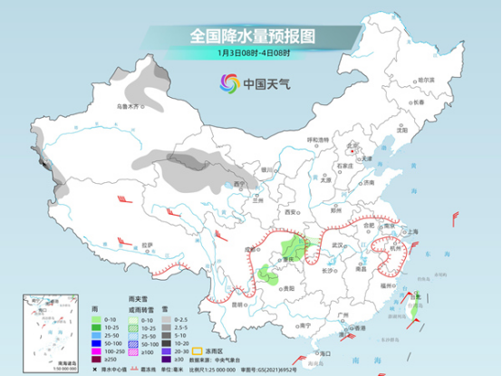 明天,新疆北疆北部和南疆西部山區(qū)、甘肅河西地區(qū)、青海北部、湖北西南部等地部分地區(qū)有小到中雪或雨夾雪,其中,新疆南疆西部山區(qū)部分地區(qū)有大雪。四川盆地東南部、貴州西北部、云南東北部、重慶中北部、臺灣島東部等地部分地區(qū)有小雨。