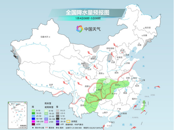 明天,西南一帶的降水將明顯增多并且向東擴(kuò)展。預(yù)計(jì),內(nèi)蒙古西北部、吉林東南部、遼寧東部、新疆南疆西部山區(qū)、青海東北部、甘肅中部、山西中北部以及陜西南部、湖北西部、重慶東北部高海拔區(qū)域等地部分地區(qū)有小雪或雨夾雪,其中,新疆南疆西部山區(qū)等地部分地區(qū)有中到大雪,局地暴雪。安徽中部、湖北大部、湖南中西部和北部、四川盆地東部、重慶大部、貴州大部、云南中東部、廣西西北部、臺灣島大部等地部分地區(qū)有小雨。