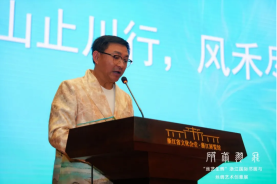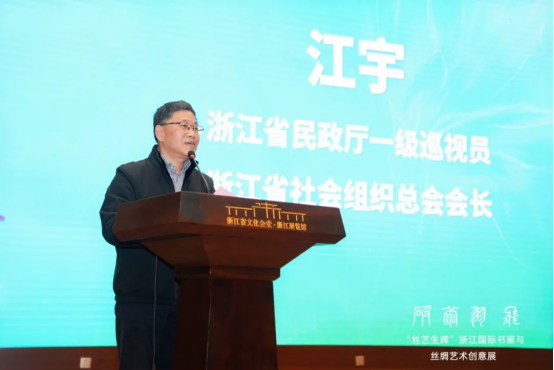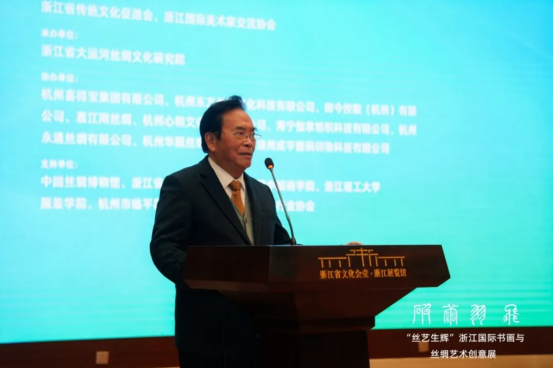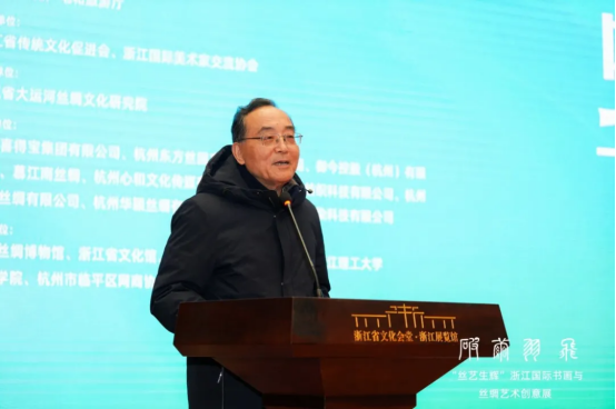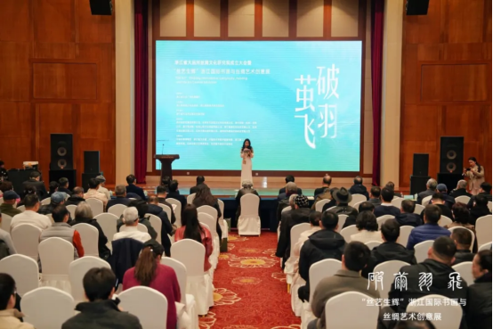 2025年1月2日,浙江省大運(yùn)河絲綢文化研究院成立大會暨“破繭羽飛”浙江省國際書畫與絲綢藝術(shù)創(chuàng)意展在浙江展覽館隆重舉行。
