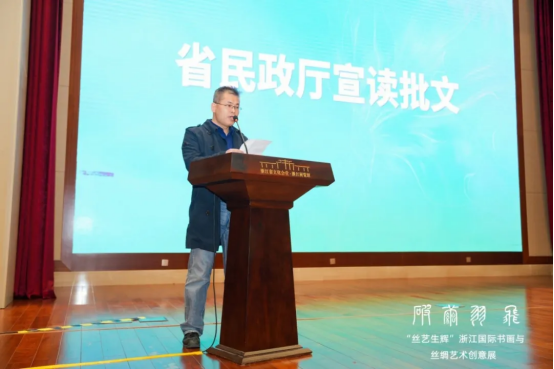 浙江省民政廳宣讀浙民社非準(zhǔn)字【2024】第21號關(guān)于批準(zhǔn)成立浙江省大運(yùn)河絲綢文化研究院的批復(fù)文件。浙江省民政廳一級巡視員、浙江省社會組織總會會長江宇先生發(fā)表重要講話,對研究院的發(fā)展寄托厚望。