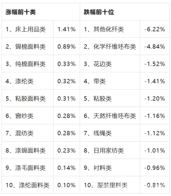 四、家紡市場環(huán)比推升,價格指數(shù)小幅上漲