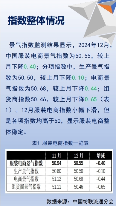 2024年12月中國(guó)服裝電商景氣指數(shù)