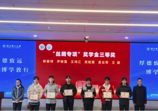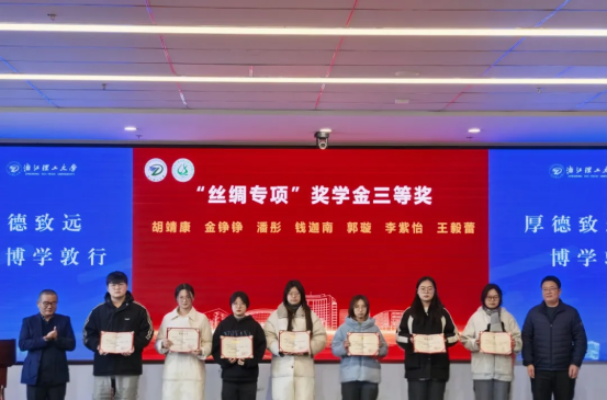 據(jù)了解,經(jīng)過前期近一個月的籌備與評選,本次共有9名學(xué)生榮獲“絲綢發(fā)展之星”獎學(xué)金,25名學(xué)生獲得“絲綢專項”獎學(xué)金。與會領(lǐng)導(dǎo)、嘉賓分別為獲獎學(xué)生頒發(fā)榮譽證書。