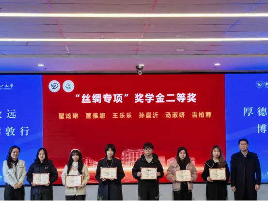 2021級紡織科學(xué)與工程博士研究生陸爽懌和2022級絲綢設(shè)計與工程本科生張晨怡分別代表獎學(xué)金獲得者做發(fā)言。他們表示,榮獲本次獎學(xué)金,不僅是對個人在學(xué)習上努力和成果的肯定,更是對全體獲獎學(xué)生的一種激勵和鼓舞。他們將珍惜這份榮譽,繼續(xù)深耕絲綢領(lǐng)域,不斷探索和創(chuàng)新,為絲綢文化的傳承與發(fā)展貢獻自己的力量。