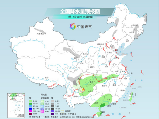 一股較強(qiáng)冷空氣已經(jīng)“發(fā)貨”,今明兩天(1月14日至15日),它將繼續(xù)東移南下影響中東部大部地區(qū),江南、東北等地局地降溫幅度可超8℃。不過,冷空氣來去匆匆,16日前后我國(guó)大部再度升溫,并將在大幅偏暖中進(jìn)入“四九”。氣溫起起伏伏,公眾需注意及時(shí)增減衣物,謹(jǐn)防感冒。同時(shí),我國(guó)大部雨雪稀少,南方多地氣象干旱發(fā)展,特別是廣西、廣東、湖南等地局地出現(xiàn)特旱,需加強(qiáng)防范。