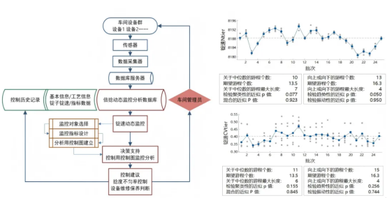 項(xiàng)目研發(fā)了從原料到成品檢驗(yàn)全過(guò)程的絲綢面料織造智能生產(chǎn)系統(tǒng)和智能管理系統(tǒng)。對(duì)絲織每一道工序進(jìn)行了數(shù)字化研究,以倍捻為例,確定了基于錠速的倍捻動(dòng)態(tài)監(jiān)控方案,并將統(tǒng)計(jì)過(guò)程控制中的控制圖技術(shù)引入倍捻工序監(jiān)控中,設(shè)計(jì)錠速Ntier及錠速CVtier監(jiān)控指標(biāo),確定了采用I-MR-R三向控制圖對(duì)兩個(gè)指標(biāo)進(jìn)行監(jiān)控,形成了基于控制圖技術(shù)的倍捻動(dòng)態(tài)監(jiān)控質(zhì)量控制及設(shè)備狀態(tài)監(jiān)控方法。