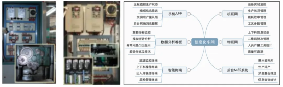 圖5 設(shè)備數(shù)字化改造前后圖及高質(zhì)量絲綢面料生產(chǎn)全流程智能化集成系統(tǒng)架構(gòu)圖