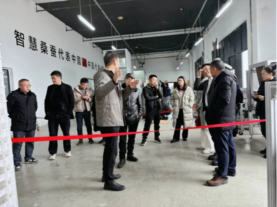2025年1月13日,四川省珙縣玉和苗族鄉(xiāng)黨委副書記張立芳帶隊(duì),珙縣政府蠶桑辦、珙縣農(nóng)業(yè)農(nóng)村局相關(guān)人員一行9人蒞臨知天而作研發(fā)基地,實(shí)地考察觀摩智能化養(yǎng)蠶成套設(shè)備,國家蠶桑技術(shù)體系崗位科學(xué)家黃先智陪同參觀交流。