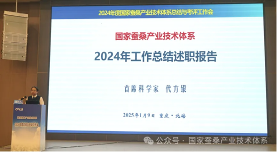 根據(jù)農(nóng)業(yè)農(nóng)村部科學(xué)技術(shù)司通知要求,國(guó)家蠶桑產(chǎn)業(yè)技術(shù)體系(以下簡(jiǎn)稱國(guó)家蠶桑體系)于2025年1月8–12日在重慶市北碚區(qū)召開(kāi)了2024年總結(jié)考評(píng)暨產(chǎn)業(yè)發(fā)展研討會(huì)。出席會(huì)議的有農(nóng)業(yè)農(nóng)村部全國(guó)農(nóng)業(yè)技術(shù)推廣服務(wù)中心園藝作物技術(shù)處萬(wàn)克江處長(zhǎng),重慶市商務(wù)委員會(huì)黨組成員彭和良副主任,重慶市農(nóng)業(yè)技術(shù)推廣總站羅雪峰副站長(zhǎng),國(guó)家蠶桑體系首任首席科學(xué)家、西南大學(xué)向仲懷院士,西南大學(xué)校長(zhǎng)王進(jìn)軍教授,國(guó)家蠶桑體系前首席科學(xué)家、西南大學(xué)魯成教授,廣西、四川、浙江、廣東、安徽、山東、重慶等7個(gè)?。ㄊ小^(qū))的行政管理、推廣單位負(fù)責(zé)人和地方創(chuàng)新團(tuán)隊(duì)首席專家,行業(yè)部分資深專家和體系“退休”專家代表,國(guó)家蠶桑體系首席科學(xué)家、全體在聘專家及部分團(tuán)隊(duì)成員,共計(jì)120余人。