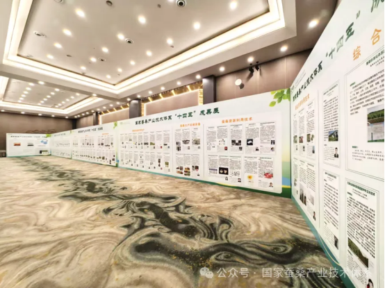 會(huì)議期間,設(shè)有國(guó)家蠶桑產(chǎn)業(yè)技術(shù)體系“十四五”成果展?!笆奈濉币詠?lái),國(guó)家蠶桑體系針對(duì)蠶桑產(chǎn)業(yè)發(fā)展中的關(guān)鍵共性技術(shù)瓶頸,重點(diǎn)圍繞“蠶?,F(xiàn)代高效綠色種養(yǎng)生產(chǎn)關(guān)鍵技術(shù)研發(fā)與應(yīng)用”和“桑蠶繭絲資源多元高效利用關(guān)鍵技術(shù)研發(fā)與應(yīng)用”兩大主線任務(wù)開(kāi)展攻關(guān),構(gòu)建產(chǎn)業(yè)基礎(chǔ)數(shù)據(jù)平臺(tái),實(shí)施“百項(xiàng)技術(shù)列裝全產(chǎn)業(yè)鏈工程”,取得了十分突出的成效。本次共展示成果107項(xiàng),分為9個(gè)方面,其中數(shù)據(jù)平臺(tái)構(gòu)建及種質(zhì)資源6項(xiàng)、蠶育種技術(shù)與新品種25項(xiàng)、桑樹(shù)新品種7項(xiàng)、蠶養(yǎng)殖技術(shù)13項(xiàng)、桑樹(shù)栽培管理技術(shù)11項(xiàng)、蠶桑病蟲(chóng)害防控技術(shù)18項(xiàng)、蠶桑生產(chǎn)機(jī)械裝備6項(xiàng)、蠶桑資源利用技術(shù)16項(xiàng)、綜合技術(shù)5項(xiàng)。