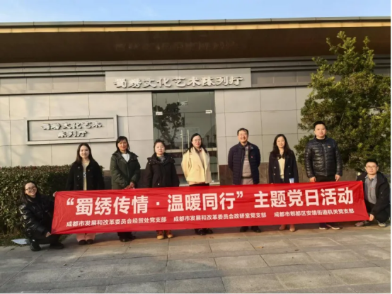 為深入學(xué)習(xí)貫徹習(xí)近平總書記對(duì)四川工作系列重要指示精神、省委十二屆六次全會(huì)精神、市委市政府有關(guān)決策部署,按照委機(jī)關(guān)關(guān)于扎實(shí)開展“暖冬行·送溫暖”活動(dòng)相關(guān)要求,日前,成都市發(fā)展改革委經(jīng)貿(mào)處黨支部、政研室黨支部、郫都區(qū)安靖街道機(jī)關(guān)黨支部聯(lián)合開展以“蜀繡傳情·溫暖同行”為主題的黨建聯(lián)創(chuàng)黨日活動(dòng)。