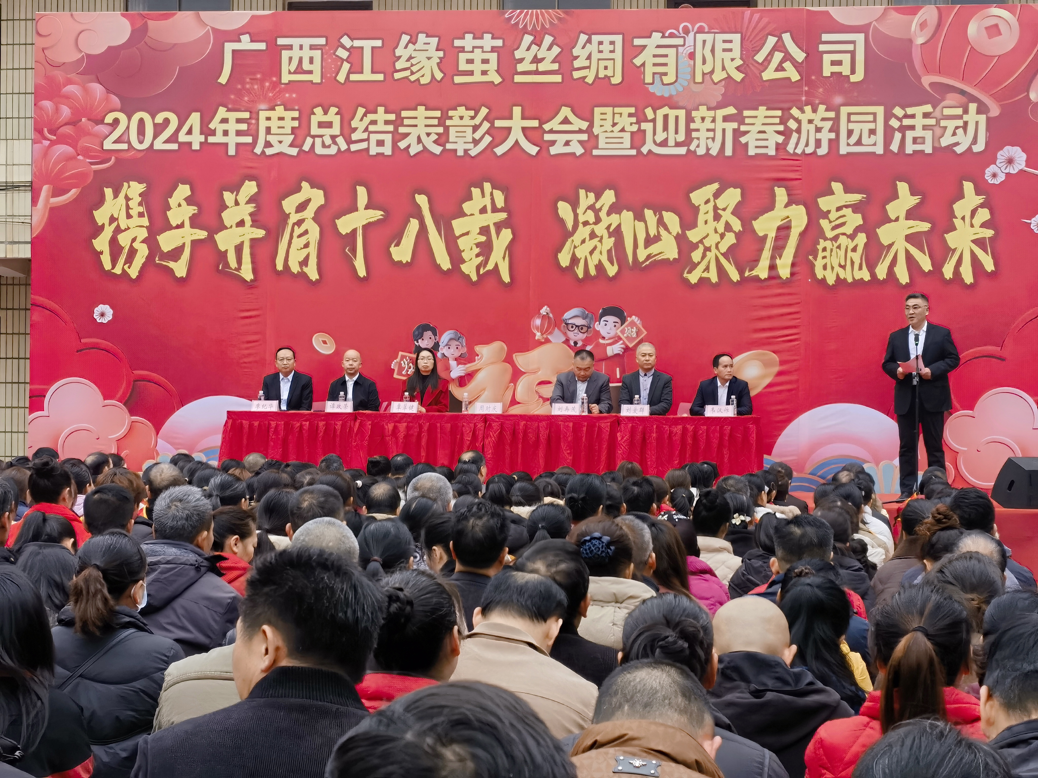 1月23日上午8:30時(shí),廣西江緣繭絲綢有限公司在本部辦公樓門前廣場(chǎng)隆重舉行2024年度總結(jié)表彰大會(huì)暨2025年迎新春拔河比賽活動(dòng),會(huì)議及活動(dòng)盛況空前,創(chuàng)公司成立18年以來(lái)之最。