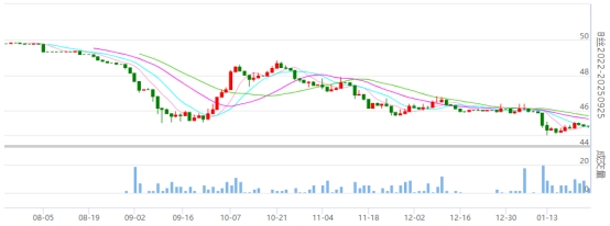 今日(2025年01月24日,周五)中國(guó)繭絲綢交易市場(chǎng)生絲電子指數(shù)收于4565.35點(diǎn)。B絲2022D(商檢4A級(jí)生絲):250325合約上漲0.03萬元報(bào)收于46.08萬元;250925合約報(bào)平收于45.15萬元;260325合約下跌0.15萬元報(bào)收于44.97萬元。