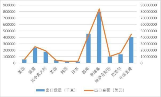 2024年羊絨圍巾出口主要國家情況