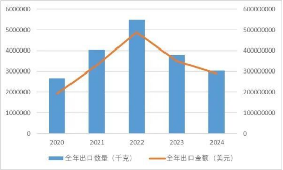 2020-2024年無毛絨出口情況