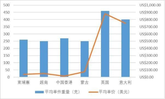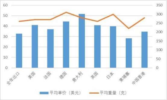 2024年羊絨圍巾出口主要國家價格情況