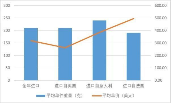 5、羊絨圍巾進口52.88萬條,進口額16783.93萬美元,數(shù)量、金額分別增長18.70%、38.57%,平均單價317.39美元,增長16.74%。其中,自英國、意大利及法國出口至中國總量48.20萬條,占進口總量91%,平均單價分別為260.44美元、382.77美元及494.10美元,平均漲幅在5.81%至17.69%區(qū)間,由此反映出歐洲產(chǎn)品依然占據(jù)部分國內(nèi)羊絨圍巾高端市場的情況。
