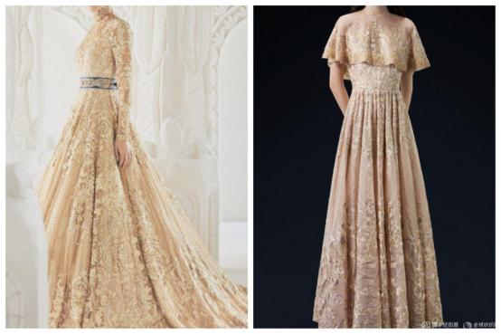 近年,越來越多設(shè)計(jì)師與服裝品牌將粵繡運(yùn)用到高定服裝中。