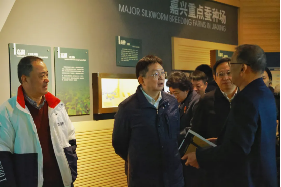 調(diào)研組一行在參觀嘉興市絲綢博物館過(guò)程中,通過(guò)展陳快速了解了中國(guó)絲綢文化和嘉興絲綢的歷史淵源和發(fā)展軌跡,凌激副部長(zhǎng)對(duì)嘉欣絲綢在弘揚(yáng)絲綢文化方面做出的努力給予高度評(píng)價(jià),希望企業(yè)繼續(xù)發(fā)揮能量,在文化賦能產(chǎn)業(yè)發(fā)展上加把力。