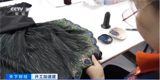龔清娥是這家服裝生產(chǎn)企業(yè)的釘珠工人,她說今年他們的國潮服裝訂單增幅最大,而且客戶對制作工藝的要求越來越高。