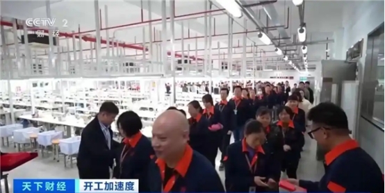 上午8時多,在廣東惠州的一家服裝生產(chǎn)企業(yè),三百多名工人拿著剛剛收到的開工紅包,高高興興地走進廠區(qū)。由于訂單多,春節(jié)之后很多工人都提前返崗了。
