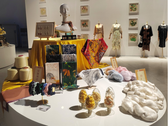 蠶桑絲綢科技創(chuàng)新館內(nèi),呈現(xiàn)了未來(lái)項(xiàng)目所產(chǎn)生絲的原料、產(chǎn)品。