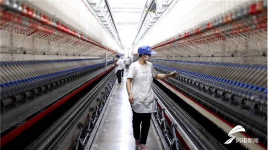 記者在德州藍(lán)天紡織有限公司看到,伴隨著機(jī)器的轟鳴聲,工人們正忙著加工新訂單。