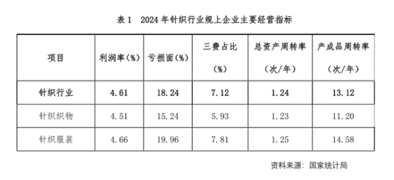 2024年針織行業(yè)企業(yè)利潤總額取得較大幅度的增長,在總資產(chǎn)周轉(zhuǎn)率、產(chǎn)成品周轉(zhuǎn)率與上年同期均基本持平的基礎(chǔ)上,實現(xiàn)了利潤率同比提高、營業(yè)成本降低、三項費用占比下降、虧損面縮小,呈現(xiàn)出運營效益持續(xù)改善向好的發(fā)展態(tài)勢。