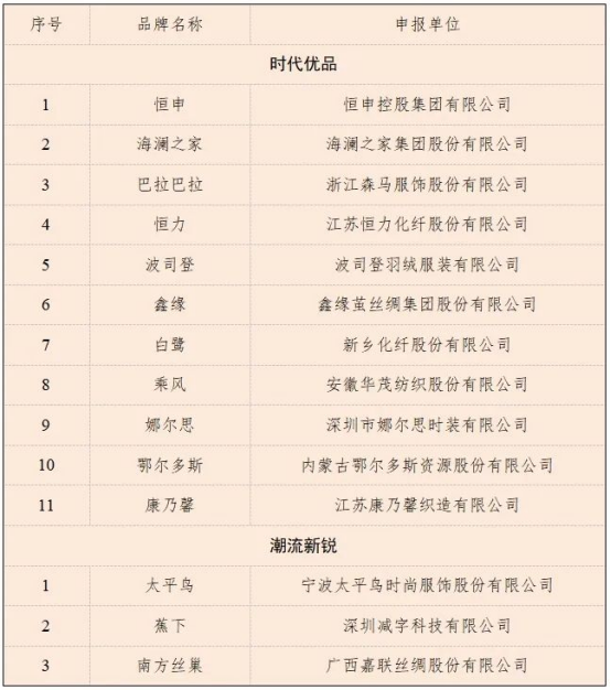 首批中國(guó)消費(fèi)名品公示!14家紡織品牌、10個(gè)涉紡區(qū)域品牌上榜