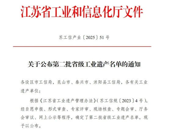 江蘇省工業(yè)遺產(chǎn)是指在江蘇工業(yè)長期發(fā)展進程中形成的,具有較高的歷史價值、科技價值、社會價值和藝術(shù)價值,經(jīng)省工業(yè)和信息化廳認定的工業(yè)遺存。