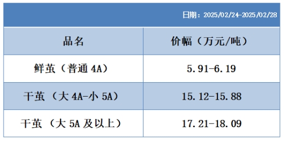 根據(jù)本周蠶繭報價按照指數(shù)方案形成的基準品價格區(qū)間