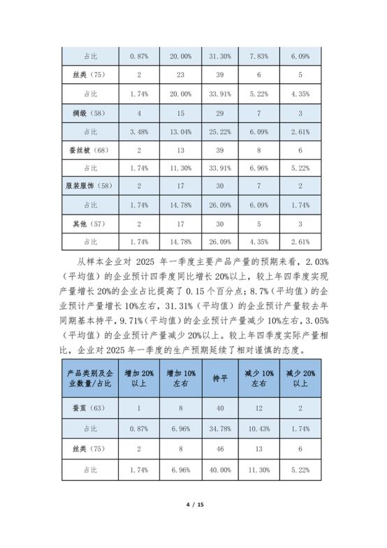 數(shù)據(jù)丨2024年四季度全國繭絲綢行業(yè)景氣調(diào)查分析報告