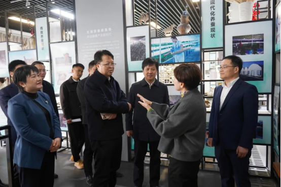 在太湖雪蠶桑文化園,劉博一行深入太湖雪絲綢展廳,聽取企業(yè)發(fā)展歷程、業(yè)務(wù)布局、市場(chǎng)開拓等情況介紹。作為扎根震澤的新國(guó)貨絲綢品牌代表,蘇州太湖雪絲綢股份有限公司集蠶絲被、床品套件、絲綢飾品、絲綢服飾等產(chǎn)品的研發(fā)、設(shè)計(jì)、生產(chǎn)、銷售于一體。成立近20年來(lái),太湖雪絲綢不斷以產(chǎn)品創(chuàng)新、品質(zhì)提升擦亮品牌、開拓市場(chǎng),推動(dòng)絲綢文化融入現(xiàn)代生活,走出了一條內(nèi)外貿(mào)一體化協(xié)同發(fā)展的絲綢產(chǎn)業(yè)蝶變之路,建設(shè)了線上與線下、境內(nèi)與境外雙輪并舉立體式銷售模式,企業(yè)發(fā)展不斷向新向好。