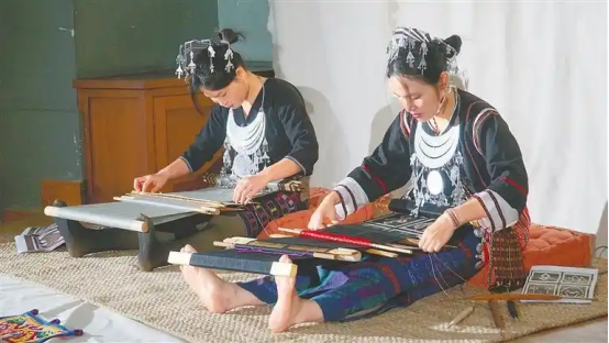 來自五指山的兩位非遺傳承人現(xiàn)場(chǎng)演示黎錦編織技藝