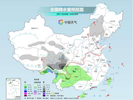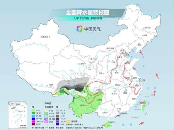 明天,西藏東部、川西高原等地部分地區(qū)有小到中雪或雨夾雪,局地有大到暴雪。四川盆地南部、貴州大部、云南、海南島、臺灣島等地部分地區(qū)有小雨,其中,西藏東南部、云南西北部等地部分地區(qū)有中雨。