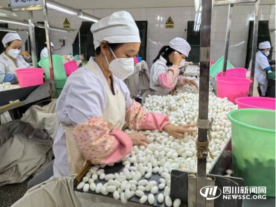 車間的工作人員正在挑選優(yōu)質(zhì)蠶繭