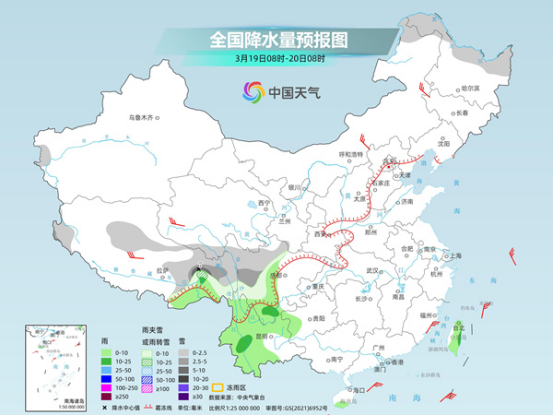 具體來看,中央氣象臺(tái)預(yù)計(jì),今天,西藏東部、青海東部和南部、甘肅西南部、川西高原、貴州西北部、黑龍江北部等地部分地區(qū)有小到中雪或雨夾雪,其中,西藏東部、川西高原等地部分地區(qū)有大雪,局地暴雪。西藏東南部、四川盆地西部、云南大部、重慶北部、貴州西部、廣西西北部、海南島南部、臺(tái)灣島等地部分地區(qū)有小雨,其中,西藏東南部、云南西北部、臺(tái)灣島東部等地部分地區(qū)有中雨,局地有大雨。